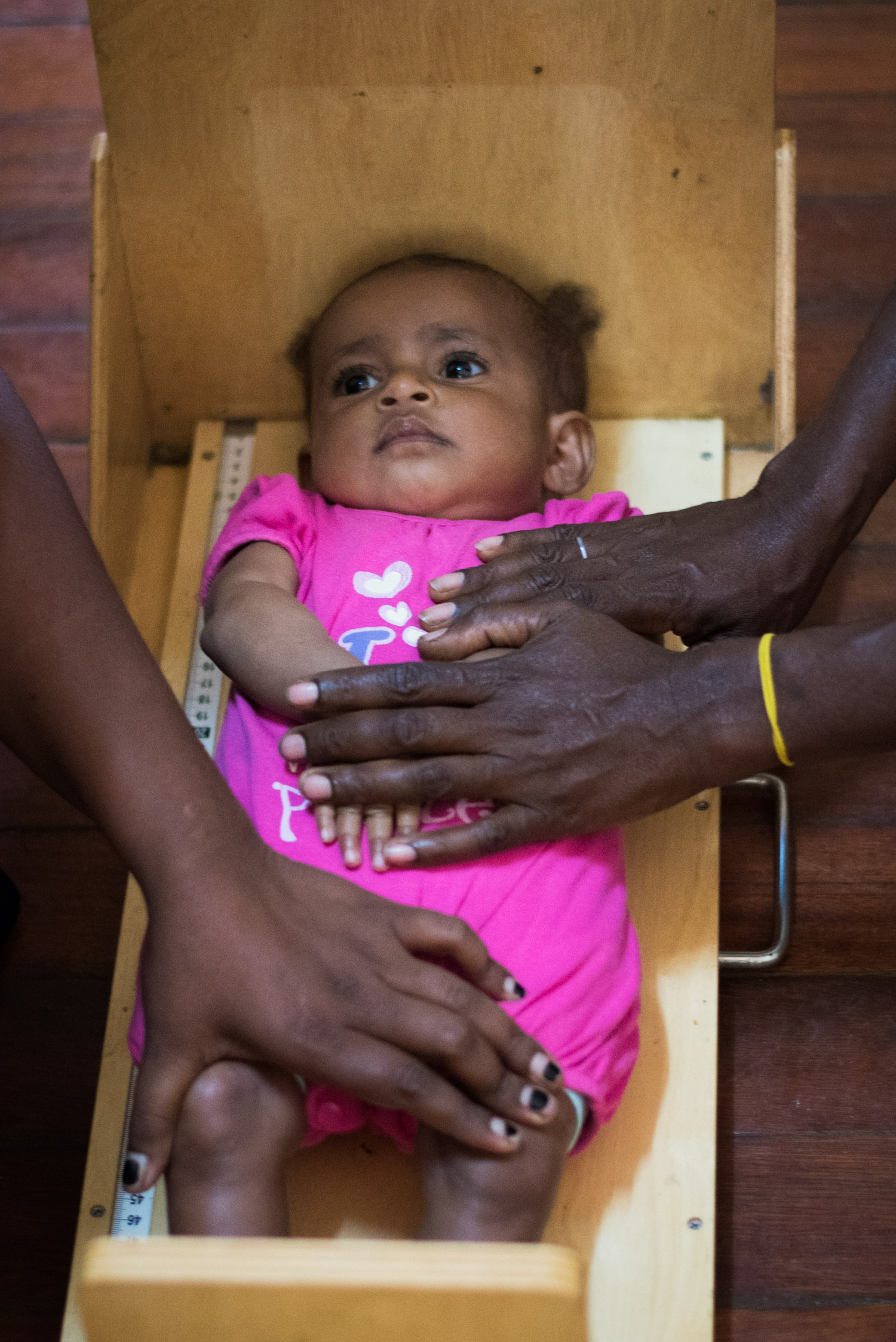 Susu Mama’s clinic in Goroka. A girl’s arm is being measured to check if she is malnourished.