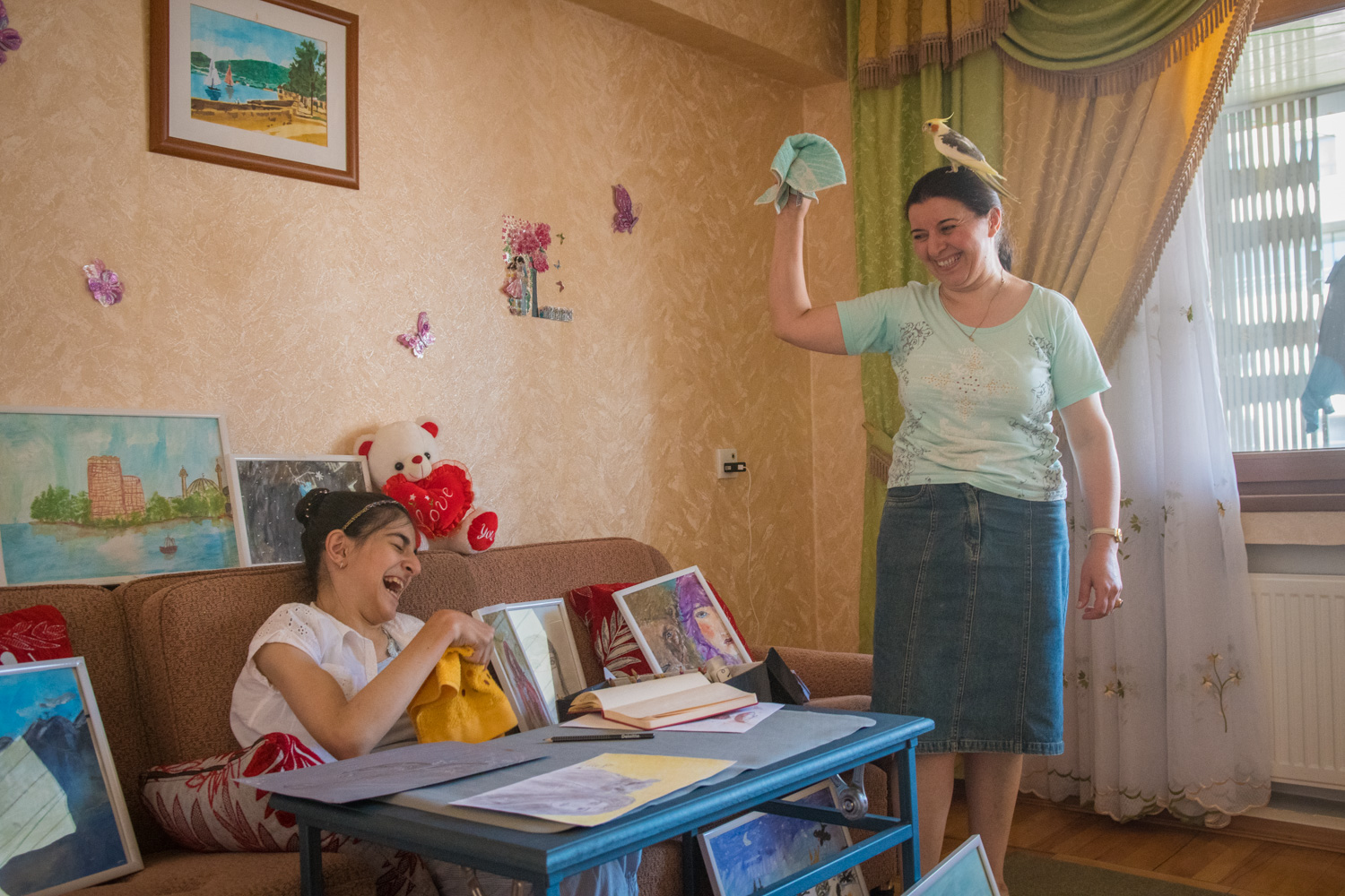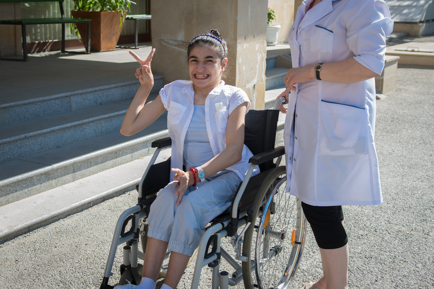 This female adolescent is also a patience of the Baku rehabilitation center. She has a severe motor skills disorder. Again, the love she receives from the caregivers makes all the difference in the benefits of the treatment.