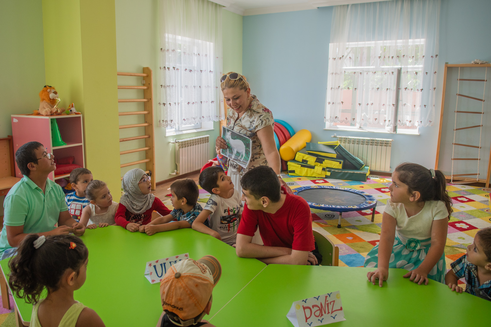 Early education Centre. Baku. May 2018. The Early Learning Centre in Hovsan has become a social hub for many parents. Bringing children to pre-school gives parents a chance to socialize and network with others. Creating a supportive community culture has benefits beyond personal friendships.